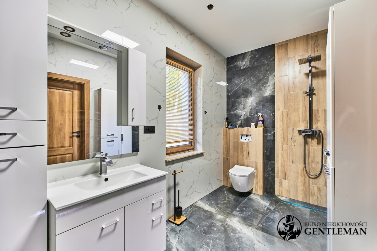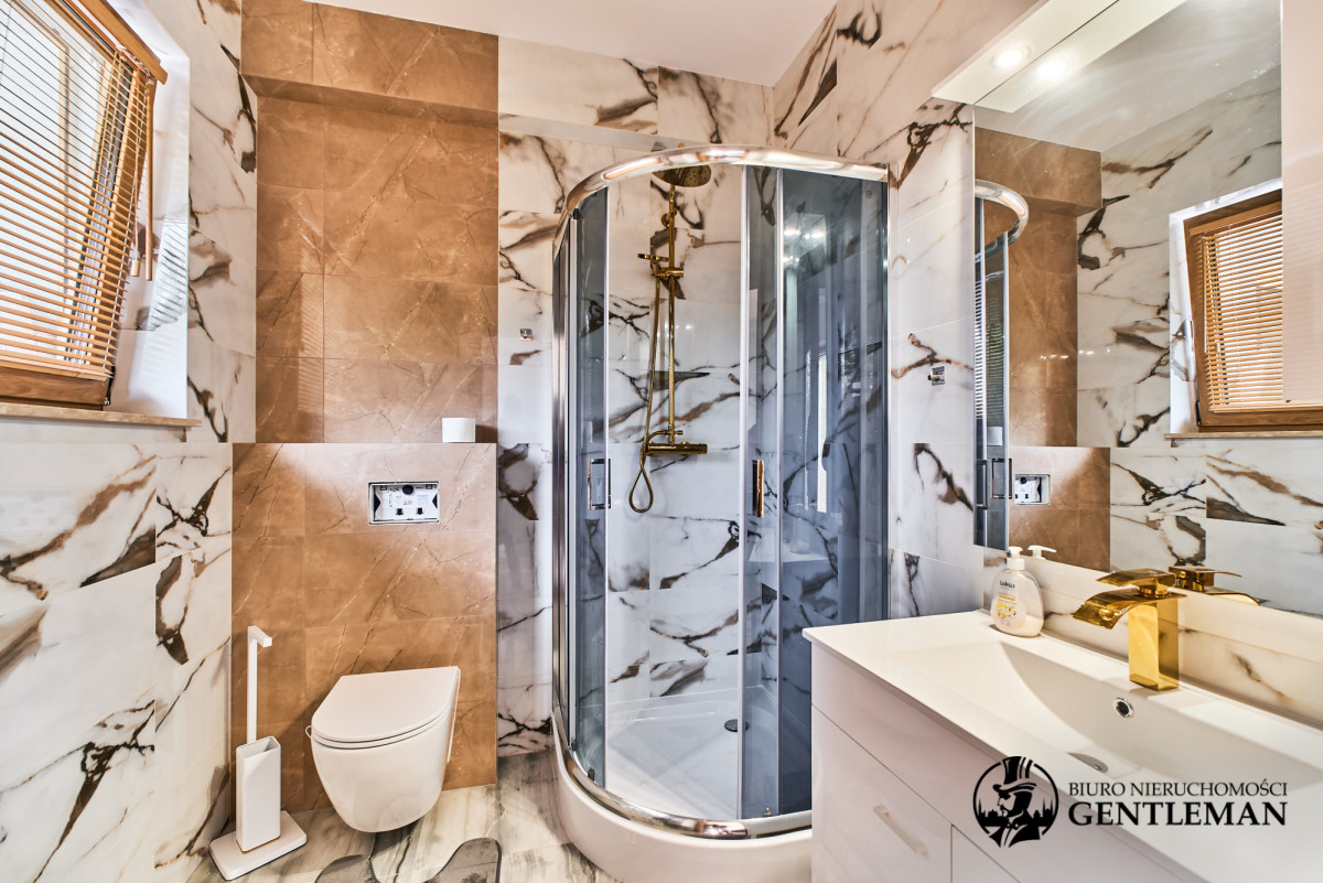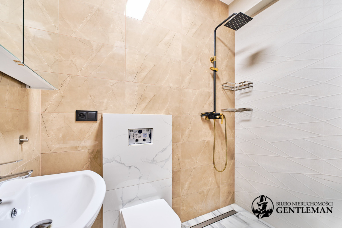 - 3 stylowe łazienki, każda z prysznicem i toaletą, w tym jedna z wanną, wykończone z dbałością o detale i nowoczesne trendy.